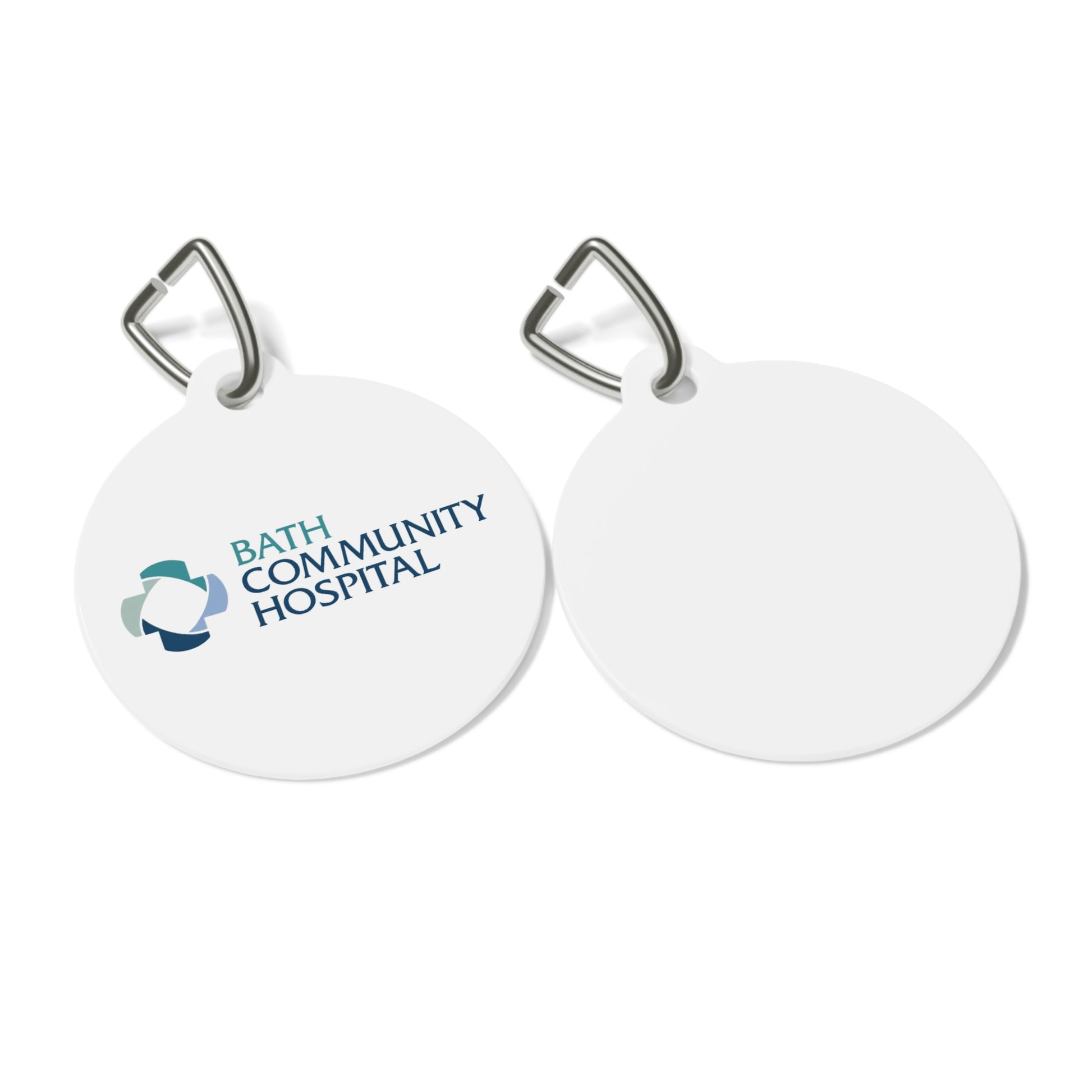 Personalized pet tags provide a fresh way to spice up a furry friend's collar. The tag and clip are both made of metal. This increased durability comes in handy, as collar pieces can snag on brush, corners, etc. The base color is white, giving designs an even printing surface. Both sides are flattened.